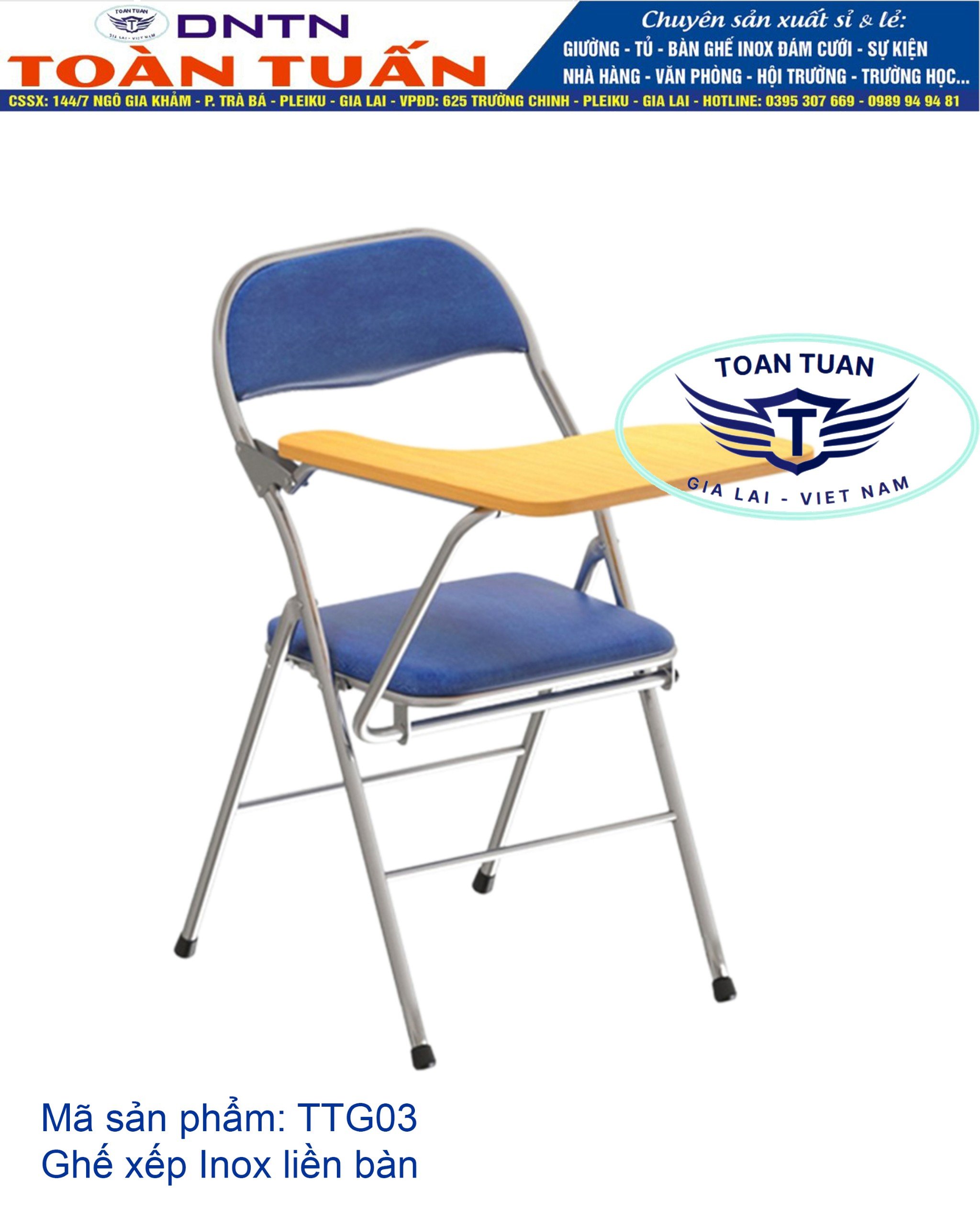 Ghế gấp liền bàn chân inox TTG03 sẽ tạo sự êm ái thoải mái cho người ngồi. Sản phẩm thường được dùng trong văn phòng, phòng chờ, phòng tiếp dân hoặc những nơi có diện tích hẹp.